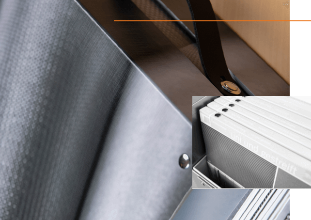 Für die Veredelung Ihrer Musterkollektion stellen wir Ihnen eine große Auswahl bewährter Komponenten wie Griffe, Mechaniken, Buchschrauben, Buchecken, Ösen, Nieten, Magnete und Verschlüsse sowie exklusive Eigenentwicklungen zur Verfügung.
